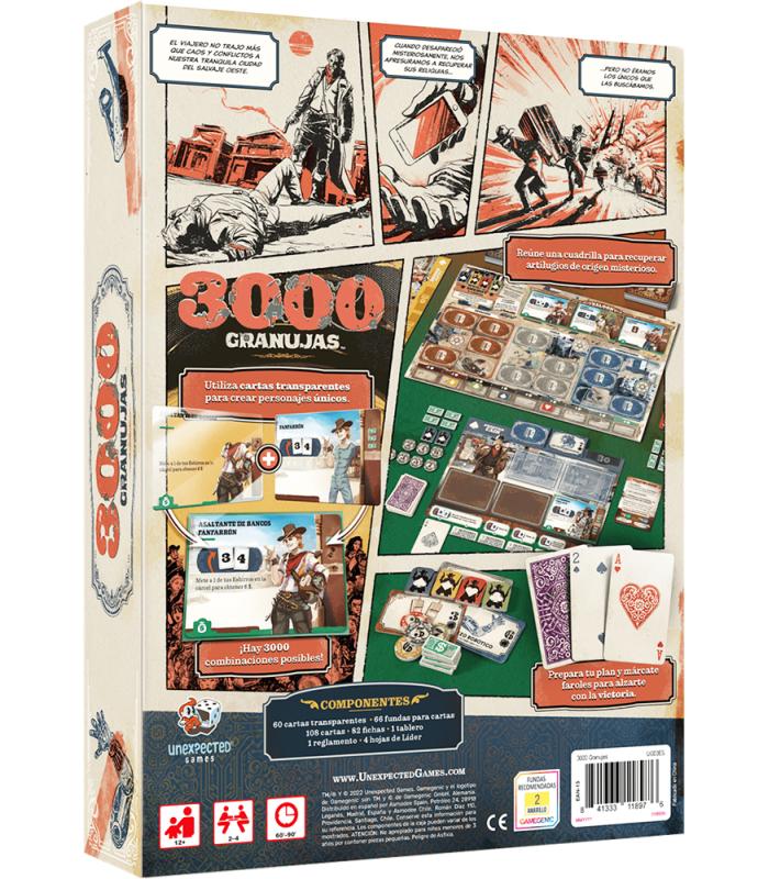 En 3000 Scoundrels, los jugadores asumen los roles de líderes rivales que intentan robar la valiosa tecnología que dejó atrás el Viajero. Al superponer cartas transparentes, creas bribones únicos y los usas para superar a tus rivales. En resumen: contrata bribones para crear poderosos combos, roba tecnología y supera a tus oponentes.