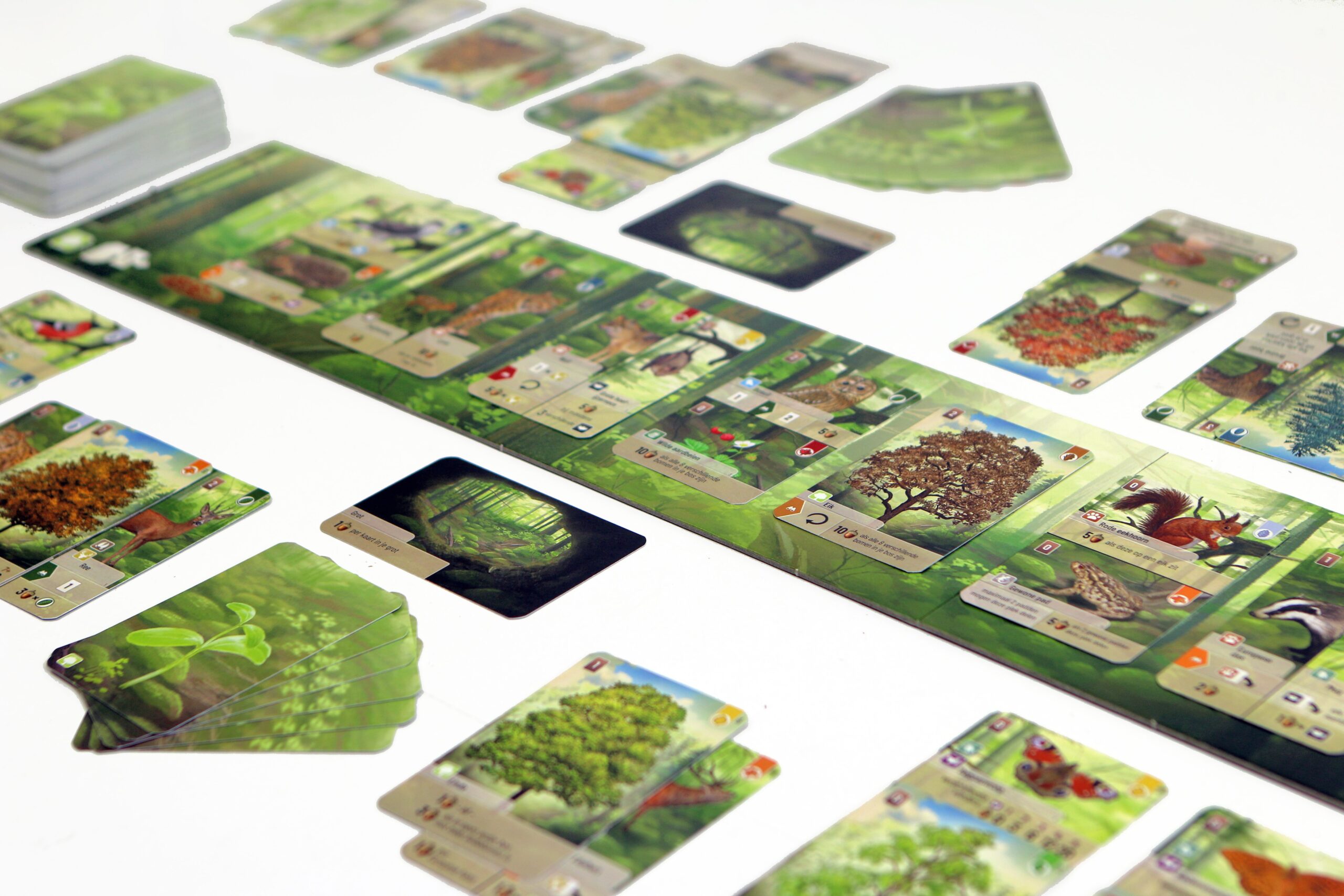 Al comienzo de la partida, cada jugador tiene seis cartas en la mano. Las cartas representan un tipo concreto de árbol o dos habitantes del bosque (animales, plantas, hongos, etc.). Estas últimas están divididas en dos mitades —ya sea vertical u horizontalmente—, con un habitante en cada mitad de la carta.