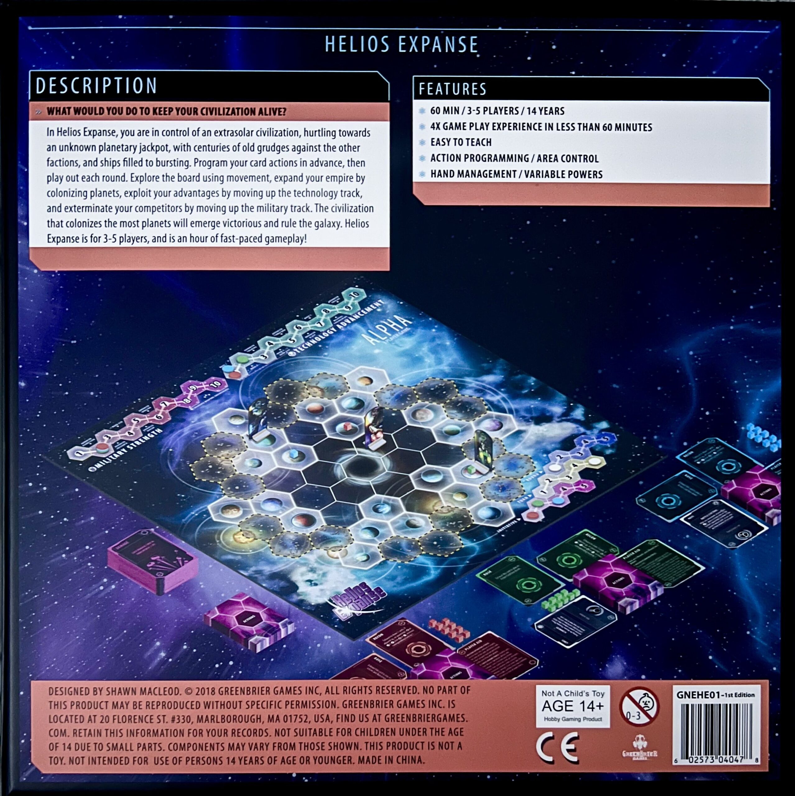 Helios Expanse se inspiró en la idea de desarrollar un juego de mesa que ofreciera una experiencia 4X en menos de sesenta minutos, buscando que la experiencia fuera igual de satisfactoria para los jugadores tradicionales de 4X como para los más casuales. Esta visión definió un conjunto específico de objetivos de diseño que sirvieron como base para la creación del juego.