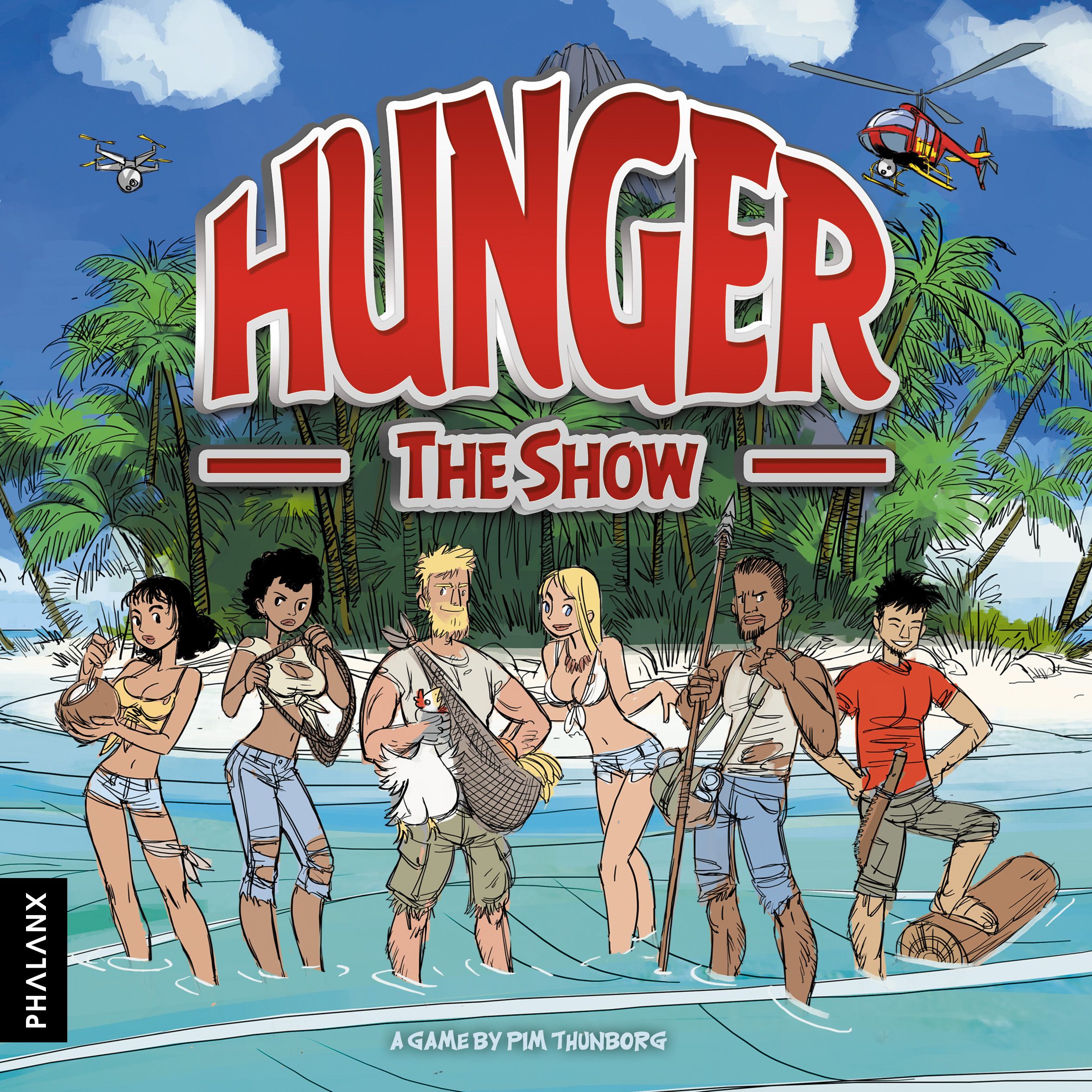 HUNGER: The Show es un juego familiar rápido y lleno de interacción entre jugadores. Para ganar, debes anticipar las acciones de tus oponentes. En la isla, puedes recolectar frutas y atrapar gallinas para conseguir más comida. Pero para ganar, también tendrás que reunir las piezas de una balsa. Menos mal que nadie pensaría en robar comida o piezas de balsa a los demás participantes…